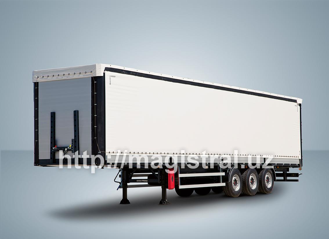 ■ Описание: трехосный полуприцеп фургон с раздвижными боковыми тентами-шторами, тент крыши со сдвижным каркасом, откидными боковыми бортами и с задними двухстворчатыми дверями